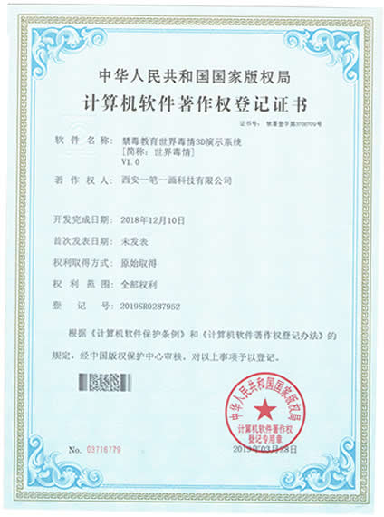 西安一筆一畫科技有限公司擁有《3C管理體系認(rèn)證》|《3A信用等級(jí)》|《展館雙甲資質(zhì)》《招投標(biāo)證件》|《展覽業(yè)10大影響力品牌》|《環(huán)藝雙甲資質(zhì)》|《禁毒教育拒毒心理測(cè)試系統(tǒng)軟著》|《飛奪瀘定橋歷史重現(xiàn)虛擬體驗(yàn)軟件軟著》|《禁毒教育世界毒情3D演示系統(tǒng)軟著》等等,是您可以信賴的展廳教育基地設(shè)計(jì)施工企業(yè)!